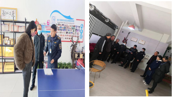 三、排查检查。2023年1月31日,九家县“双减”职能部门的执法人员按照推进会上制定的时间表、路线图,对正在经营的永仁宛林文化艺术培训有限公司、永仁形质文化艺术培训有限公司、永仁唐飖艺术培训学校有限公司三家培训机构的培训内容、培训时间、培训人员、培训收费、用工合同、资金管理、消防器材、场所安全、艺考培训、各类“教育咨询公司”“工作室”、欠薪欠费等进行了排查检查,及时为培训机构指出了灭火器没有定期检查、梯步防滑条破损、应急通道未开启、个别用工人员未买保险、办学许可证和营业执照摆放不规范等问题,并要求相关培训机构立行立改。同时,还联合开展了线下明察暗访,采取“四不两直”方式,通过“日查+夜查”“联检+抽检”等形式,对隐匿在居民楼、酒店、咖啡厅、商务楼宇、出租房屋中的违规培训开展拉网式检查,积极推进线上巡查全覆盖,严查线下培训机构违规开展线上培训、境外网络平台针对境内中小学生开展线上学科类培训等行为,严禁本地招聘网站、家教网等发布“一对一 ”“众筹私教”“家庭教师”等信息。通过联合排查检查,除三家依法依规经营的艺术类培训机构外,没有发现其他违规违法经营的线上、线下培训的个人和机构,切实保障了人民群众合法权益,维护了社会大局稳定。