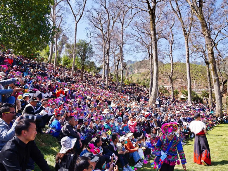 赛装赛到日头落,跳脚跳迄月当空。八方游客齐聚永仁,各族群众欢聚一堂,今年的赛装现场热闹非凡。
