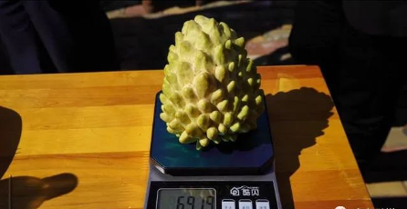 评比现场,大家的释迦果各有千秋,经过层层评选,最终,来自拉姑村村民许明礼的一颗释迦果脱颖而出,荣获金奖,这颗释迦果重691克,无论是形状、色泽,还是个头,这颗释迦果都是今天的“佼佼者”。
