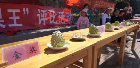 在活动中,最引人注目的还属“释迦果王”评比,果农们脸上洋溢着丰收的喜悦,信心满满地将自家果园里的“宝贝疙瘩”整整齐齐地摆放在展示台上,等待着评委们的评判。