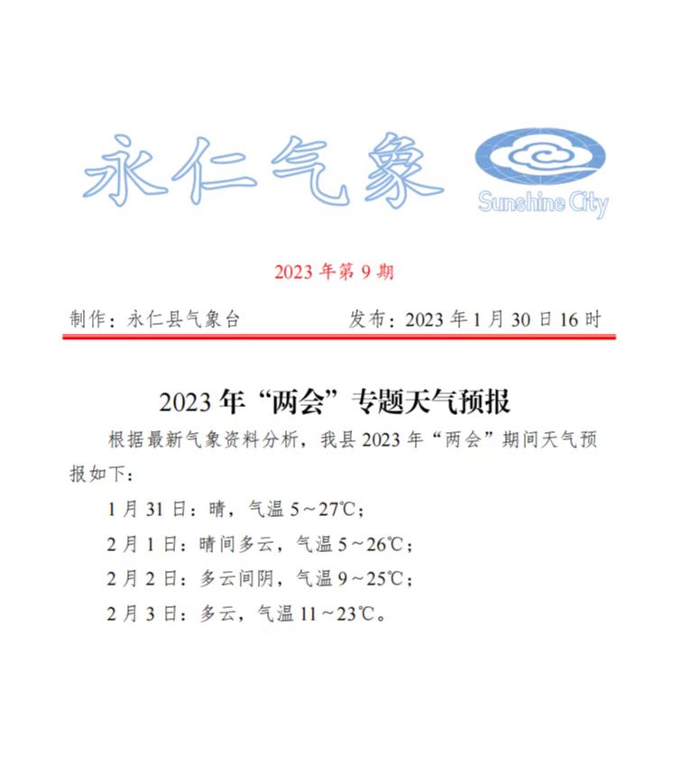 《永仁气象》2023年第9期 两会专题预报