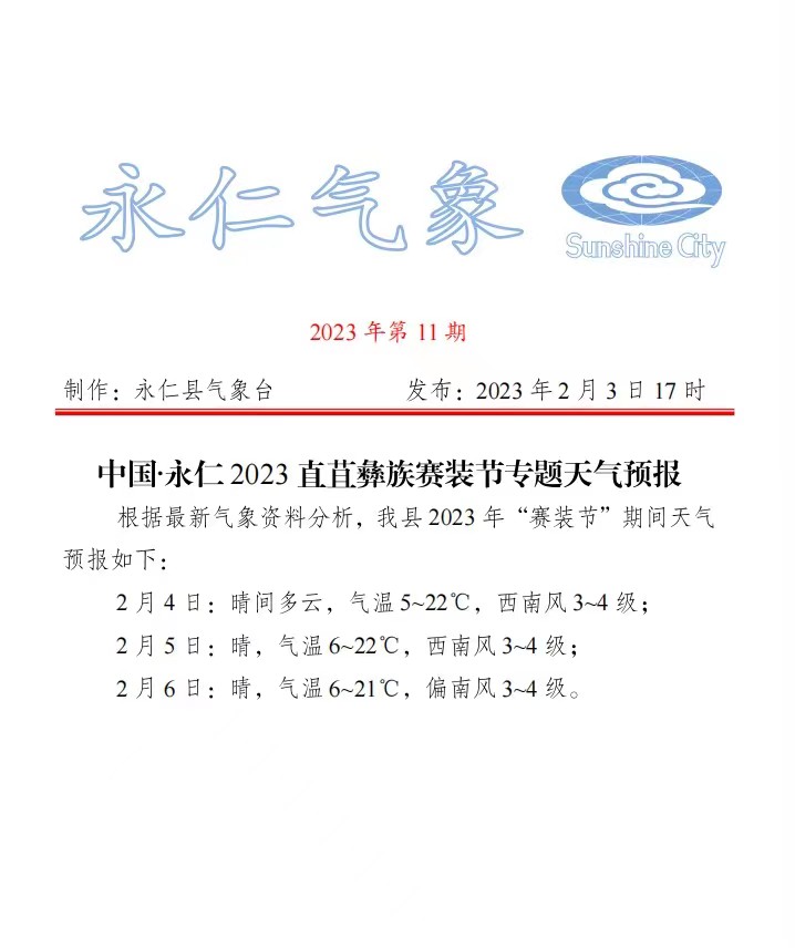 中国·永仁2023直苴彝族赛装节专题天气预报