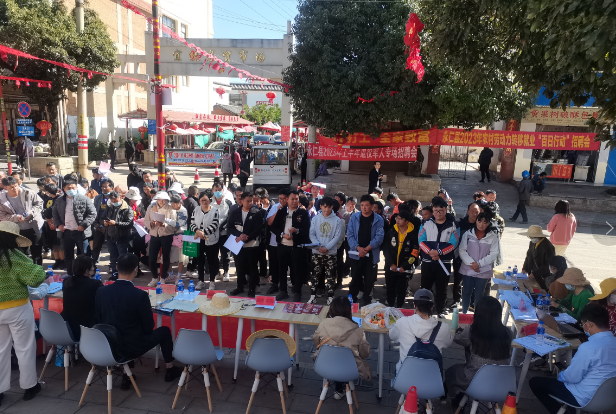 影视剧院门口举行,宜就镇人民政府罗秋丽为招聘会致辞!