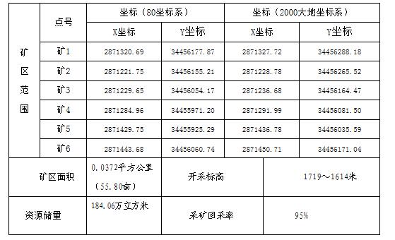 开采范围拐点坐标如下: