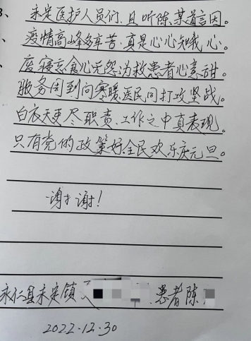 近日,365bet娱乐网_bet3365也可以_365彩票网最专业数据平台县域医共体永定分院收到一封感谢信,信中言辞恳切的表达了患者对全体医护人员的感激之情。纸短情长,字里行间满是对医务人员医疗技术水平的认可和优质医疗服务的赞许。
