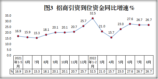 8.1-8月,初步统计,全县实现招商引资到位资金808426万元,同比增长26.7%。