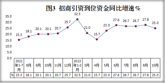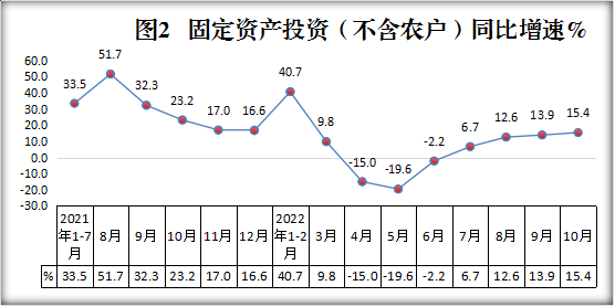 3.1-10月,全县固定资产投资(不含农户)同比增长15.4%。